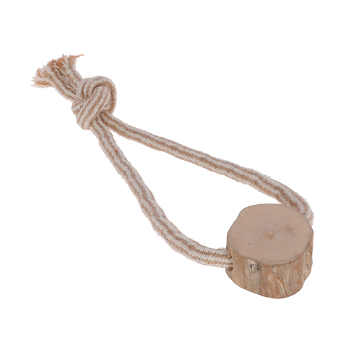 Robustes und natürliches Zerrspielzeug aus strapazierfähiger Baumwollschnur und widerstandsfähigem Kaffeebaumholz. Ideal zum Spielen und zur Zahnpf...