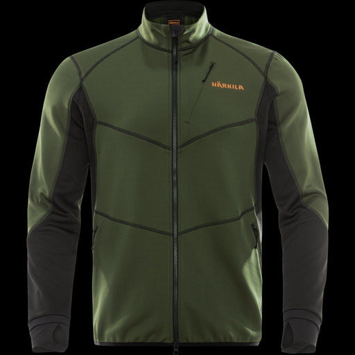 Die skandinavische Fleecejacke von Härkila in der Farbkombination Duffel Green und Schwarz bietet ideale Funktionalität für aktive Jagd- und Outdoo...