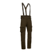 Talje med elastik i siden Taljen er højere bagpå Aftagelige seler Silikonebånd påindersiden af taljen To forlommer med vandtætte lynlåse To rummelige lårlommer med lommeklapper Skjult knivlomme ved venstre lårlomme Lynlås påbagsiden af benene for ventilation Formsyede knæ med forstærkning Forstærkning påunderbenene Skjulte lynlåse og trykknapper ved underbenet Vandtæt for påunderbenet