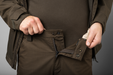 Dobbelt tryk på knaplukning og skridsikker piping inde i linningen Åbne toplommer og store lårlommer med klap Blødt, børstet komfortfor Knæjustering bagpå Justerbar benafslutning Justerbar benafslutning