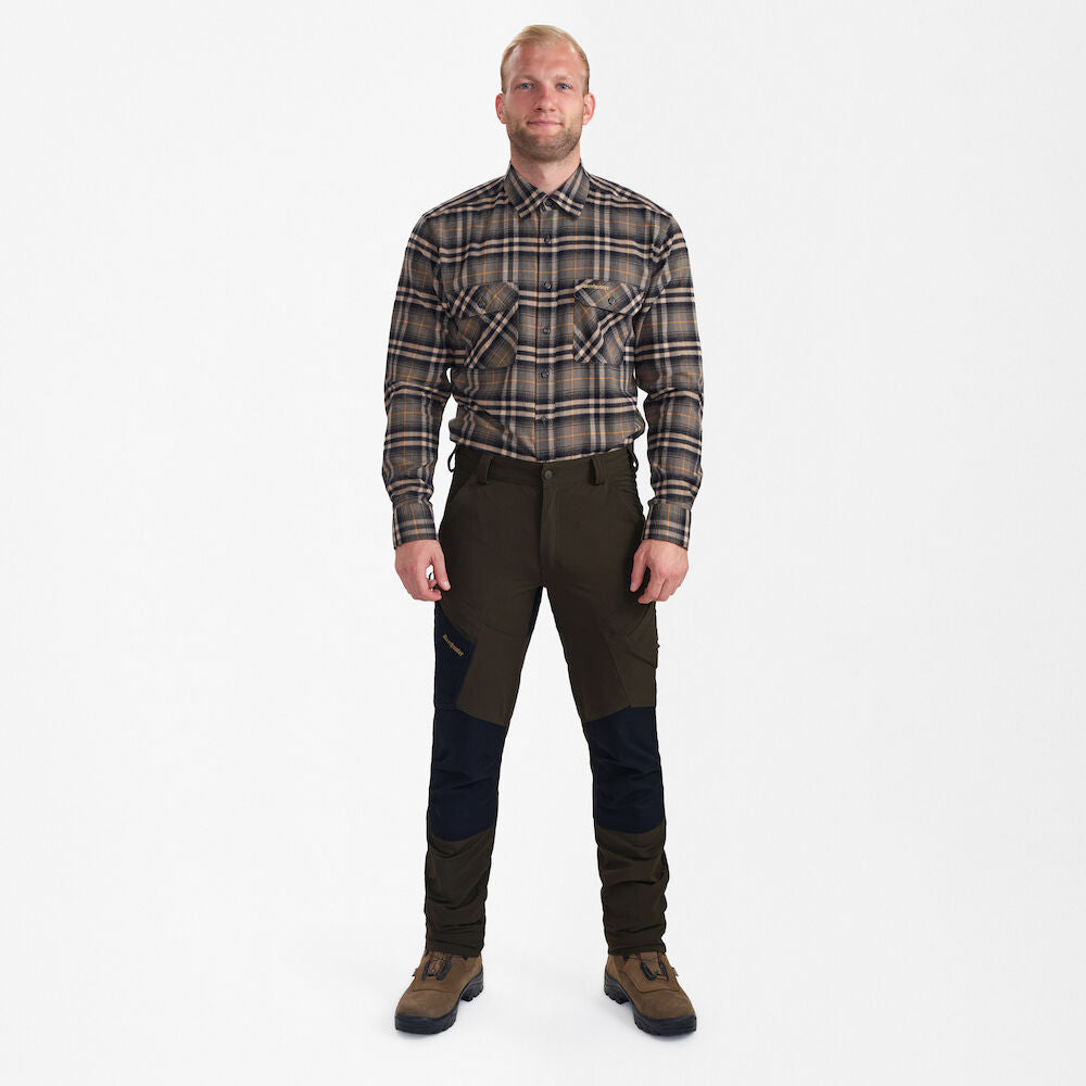 Die Northward Hose von Deerhunter in Grün/Schwarz ist der ideale Begleiter für anspruchsvolle Outdoor-Aktivitäten. Der weiche Stoff mit Baumwollfasern auf der Innenseite bietet hervorragenden Tragekomfort – selbst bei langen Einsätzen im Gelände.