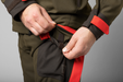 Dobbelt trykknaplukning og skridsikker piping i linningen Lommer med nem adgang og D-ring ved bæltestroppen i venstre side Lommer med nem adgang og D-ring ved bæltestroppen i venstre side Patronholder i højre lårlomme og velcroopdeling i venstre lårlomme Ventilationslynlåse bag lårlommerne Snesikring med CORDURA
