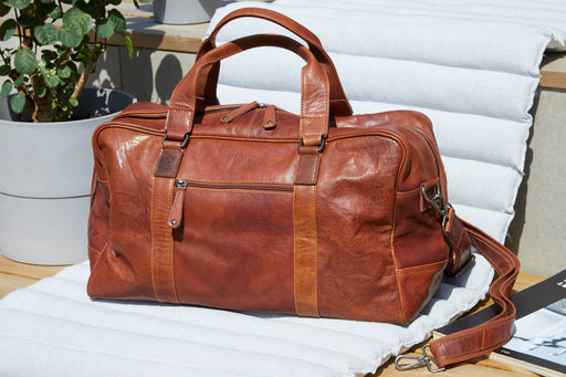 Super schöne Corium-Wochenendtasche/Reisetasche aus starkem Leder mit viel Struktur und einem sehr natürlichen Look. Das Leder wird gegerbt und ans...