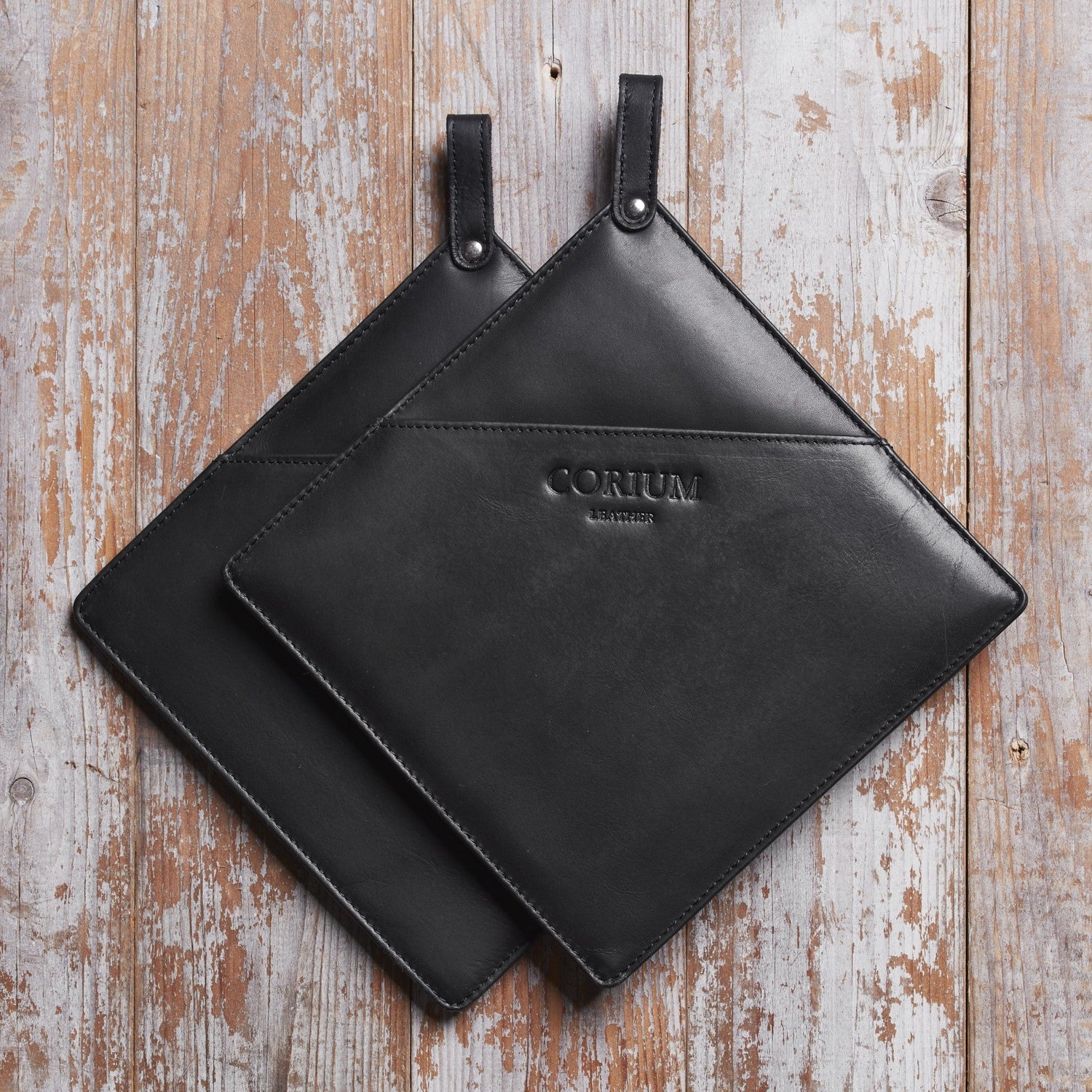 Gefertigt aus hochwertigem Restleder, das bei der Produktion der Corium-Lederschürzen anfällt, bieten diese Topflappen eine besonders langlebige Qualität. Ein wärmeisolierender Kern schützt zuverlässig vor Hitze, während das Leder mit der Zeit eine charaktervolle Patina entwickelt. Sie lassen sich bei Bedarf mit Wasser reinigen – ideal für den täglichen Einsatz in der Küche oder am Grill.