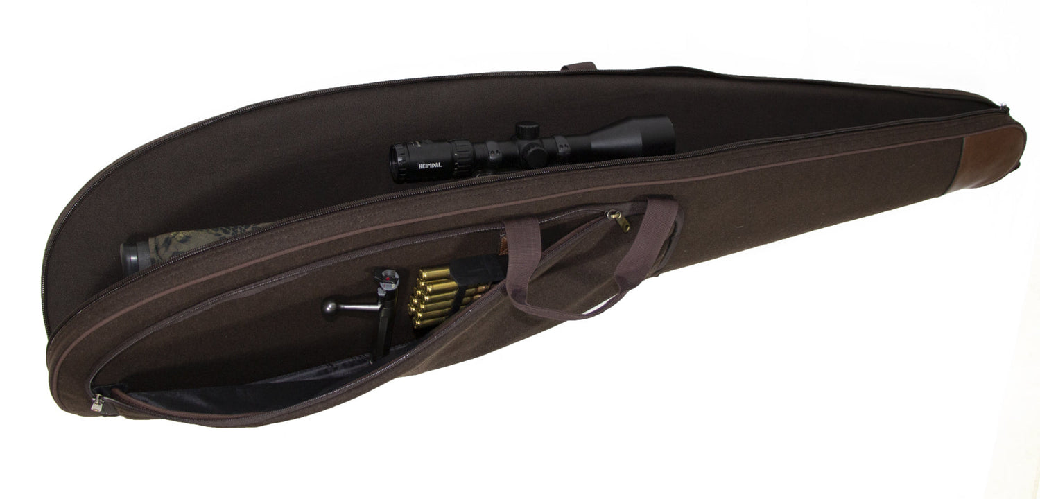 Hochwertiges Langwaffenfutteral aus edlem Loden mit stilvollem Kunstlederbesatz – perfekt für den sicheren Transport Ihrer Jagdwaffe. Die großzügige Länge von 130 cm bietet auch für Gewehre mit montiertem Schalldämpfer ausreichend Platz.