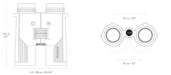 Technische Daten: 8-fache Vergrößerung, 42 mm Objektivdurchmesser, Messbereich von 10 bis 1800 m, 3V CR2-Batterie, Gehäuselänge 165 mm, Sehfeld auf 1000 m: 131 m, Gewicht: 999 g, Augenabstand 16 mm.