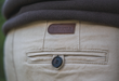 Dank des dehnbaren Stoffs passen sich die Hosen optimal an jede Bewegung an, ohne einzuengen. Die robusten Hornknöpfe und die klassische Taschenaufteilung – zwei schräge Fronttaschen, eine kleine Münztasche rechts und zwei Gesäßtaschen mit Knopfverschluss – machen die Chinos ebenso funktional wie elegant.