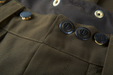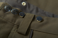 Lukning med dobbelte trykknapper og seleknapper Toplommer med nem adgang og patronlommer med lynlås Store, påsyede benlommer med vandtæt membran og velcroopdeler i venstre side Leddelte knæ og justeringsstrop bag knæet Snelås forstærket med CORDURA®