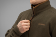 Der Sandhem Fleece-Pullover von Härkila in der Farbe Willow Green Melange besteht aus weichem, elastischem Polartec® Thermal Pro® Fleece. Dieses hochwertige Material sorgt für exzellente Wärmeleistung, hohe Atmungsaktivität und schnelles Trocknen – perfekt für energiegeladene Aktivitäten in der Natur.