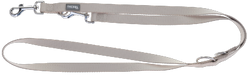 Die schmutz- und wasserabweisende Oberfläche macht die Leine besonders pflegeleicht und sorgt dafür, dass sie auch nach stürmischem Einsatz gut aussieht. Dank des stabilen Metallkarabiners lässt sich die Leine schnell und sicher am Halsband oder Geschirr befestigen.