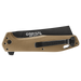 Die Klinge besteht aus hochfestem 20CV-Stahl und bietet extreme Schnitthaltigkeit sowie Korrosionsbeständigkeit – ideal für präzise Schnitte bei der Jagd oder im Camp. Die flüssig laufende Flipper-Öffnung ermöglicht ein schnelles, einhändiges Öffnen, während der Griff aus leichtem Aluminium in Coyote-Farbe sicheren Halt und angenehme Handhabung gewährleistet.
