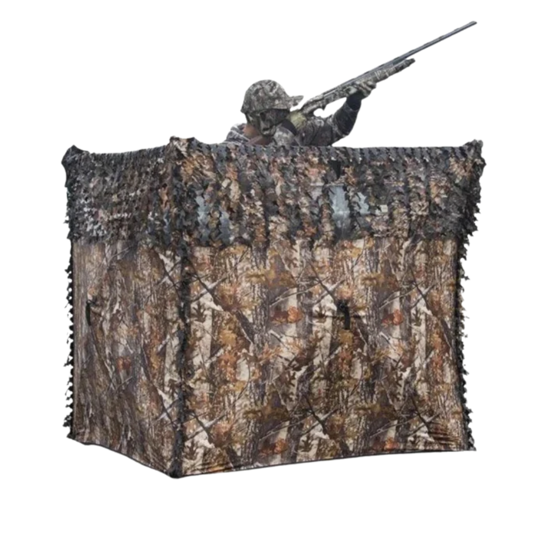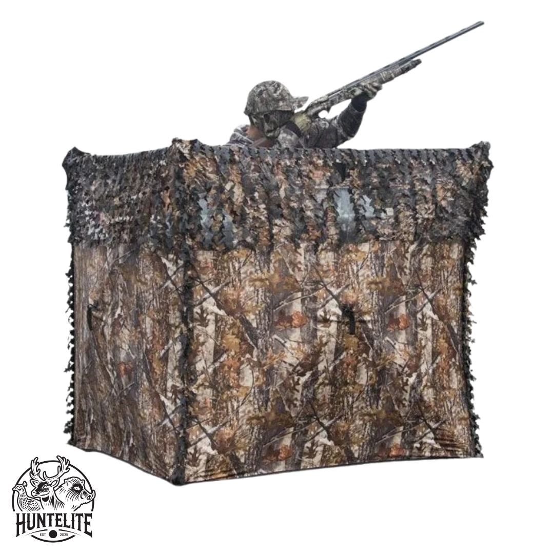 Die HuntElite 3D Tarnblende mit drei Seiten ist die ideale Lösung für flexible Tarnung bei der Jagd. Dank des cleveren Designs lässt sich das Blinde in Sekundenschnelle aufstellen und ebenso schnell wieder zusammenfalten – ganz ohne Werkzeug. Perfekt für mobile Jäger, die Wert auf schnellen Standortwechsel legen.