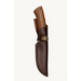 Der ergonomisch geformte Griff aus edlem Walnussholz liegt angenehm in der Hand und sorgt für präzises Arbeiten. Ein integrierter Fingerschutz bietet zusätzliche Sicherheit, besonders bei feineren Schneidarbeiten. Für den Transport ist eine robuste Lederscheide im Lieferumfang enthalten. Sie verfügt über eine Klappe mit Druckknopfverschluss, der das Messer fest und sicher am Platz hält – ob am Gürtel oder im Rucksack.