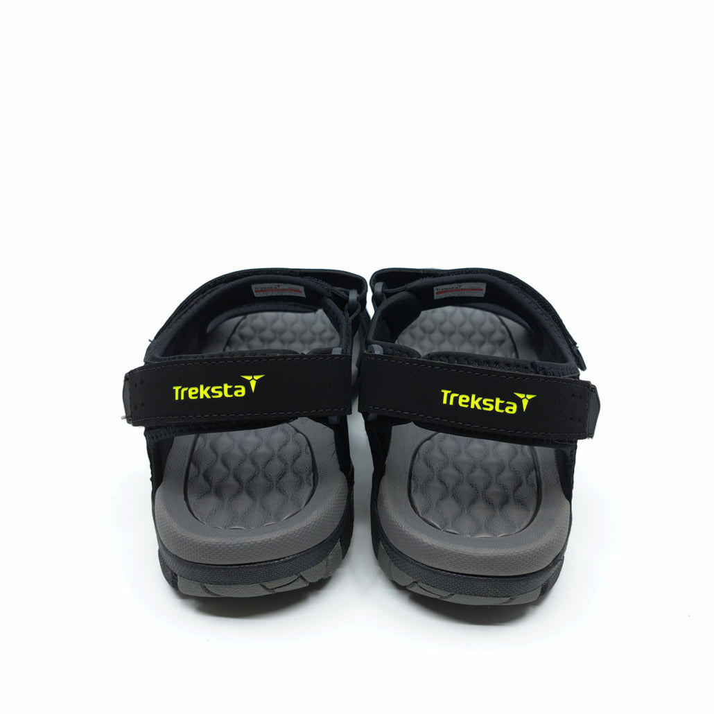 Modell: Albus – Schwarz – Treksta. Eine robuste, pflegeleichte Sandale für aktive Menschen, die auf Komfort, Funktionalität und Langlebigkeit setzen.