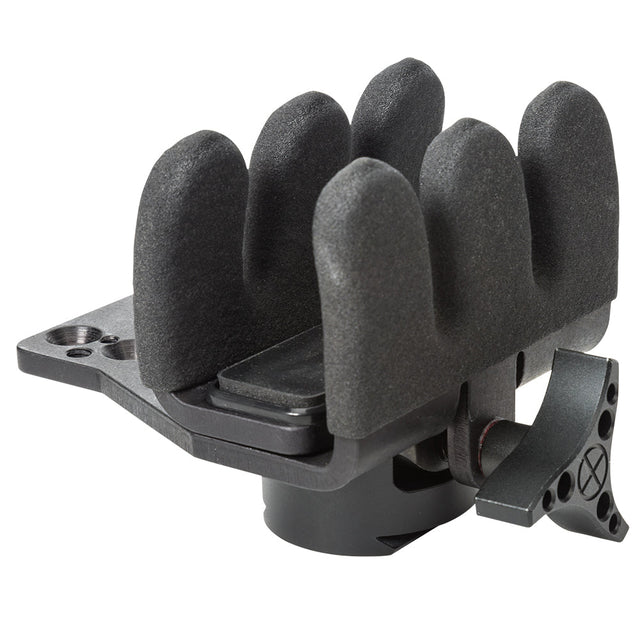 Die gepolsterte, gebogene Greifklaue des Reaper Griffs – zum Patent angemeldet – passt sich perfekt sowohl an gerade als auch schräge Schäfte und Gewehrchassis an. Das sorgt für hervorragende Stabilität in allen Lagen und unterstützt eine präzise Schusstechnik außerhalb der klassischen Bauchlage.