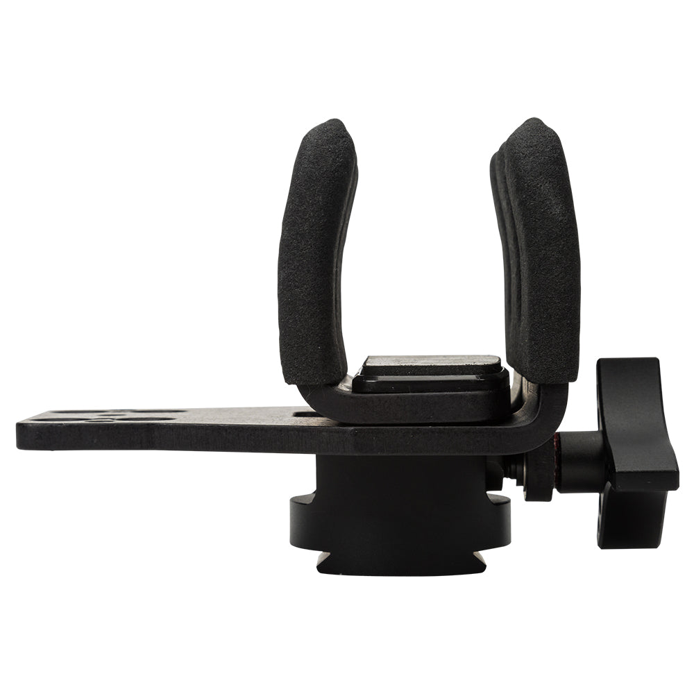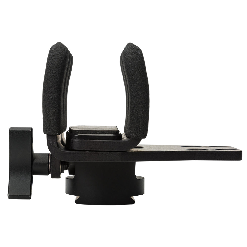 Der Griff ermöglicht eine begrenzte vertikale Bewegung, abhängig vom Anzugsgrad, bleibt dabei aber jederzeit fest und zuverlässig. Wie alle Reaper Grip Systeme ist auch dieses Modell mit 3/8-16- und 1/4-20-Gewindestangen kompatibel, dank des beiliegenden Adapters.