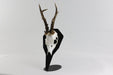 Die Variante in Schwarz überzeugt mit einem dezenten, zeitlosen Look. Wer eine warme und naturverbundene Optik bevorzugt, greift zur Ausführung in Corten-Stahl – perfekt, um Ihrer Trophäe einen rustikalen Akzent zu verleihen. Beide Oberflächen unterstreichen den hochwertigen Charakter des Exponats und sorgen für einen edlen Gesamteindruck.