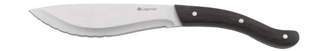 Der dunkel gehaltene Griff aus Pakka-Holz liegt sicher und angenehm in der Hand und ergänzt die polierten Klingen zu einem eleganten Gesamtbild. Das Set überzeugt durch seine Robustheit und Langlebigkeit bei regelmäßigem Gebrauch.