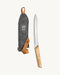 Die 21 cm lange Klinge aus hochwertigem Sandvik-Stahl bietet exzellente Schnitthaltigkeit und Stabilität. Der Griff aus stabilisiertem Holz kombiniert Robustheit mit edlem Look, während das stilvolle Etui aus grauem Filz mit Lederakzenten optimalen Schutz beim Transport bietet.