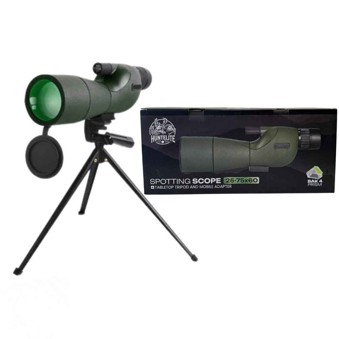 Entdecken Sie die Wunder der Natur mit unserem Spektiv 25-75x60 - HuntElite. Genießen Sie eine beeindruckende Vergrößerung (25-75x) kombiniert mit einem großen 60-mm-Objektiv für herausragende Klarheit und Lichtdurchlässigkeit – selbst über große Entfernungen. Erleben Sie Details in Top-Qualität.