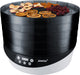 Der Dörrautomat ist kompakt, arbeitet schnell und energieeffizient, sodass er sich problemlos auch in kleinen Küchen unterbringen lässt. Die runden Platten mit 32,5 cm Ø sind stapelbar und können einzeln, zu zweit oder in mehreren Ebenen gleichzeitig verwendet werden, was Platz und Strom spart. Um 360 Grad drehbare Platten beschleunigen den Trocknungsprozess zusätzlich.